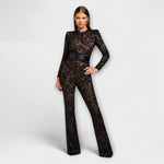 Ideal für stilbewusste Damen, die bei festlichen Anlässen oder romantischen Abenden mit einem einzigartigen Look glänzen möchten. Unterstützt durch höchste Qualität und sorgfältige Verarbeitung, ist der Theresia Spitzen-Jumpsuit das perfekte Statement-Piece in Ihrem Kleiderschrank.