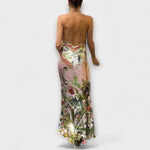 Ayla - Blumenmuster Ärmelloses Offenes Rücken Maxikleid