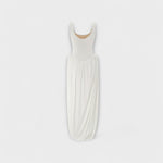 Erleben Sie das drapierte Maxikleid mit skulpturalem Rock und seitlichem Schlitz von unserer exklusiven Kollektion – perfekt für alle, die Eleganz und eine moderne Silhouette suchen. Dieses weiße Maxikleid verbindet ein eng anliegendes Oberteil mit einem kunstvoll drapierten Rock, ideal zugeschnitten auf stilvolle Anlässe und besondere Momente.