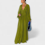 Das Elegante Plissierte Langarmkleid von unserer exklusiven Kollektion besticht durch seinen zeitlosen Chic und seinen hohen Tragekomfort, perfekt zugeschnitten auf stilbewusste Frauen, die ein Maxikleid für besondere Anlässe oder den Alltag suchen.
