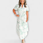 Das Eliza - Zeitloses Toile Maxi-Kleid von Marke besticht durch seinen unvergleichlichen Komfort und die elegante Optik, perfekt zugeschnitten auf entspannte Frühlingstage und stilvolle Gartenpartys. Mit seinem klassischen grün-weißen Toile-Druck verkörpert es mühelose Romantik und sorgt für einen zeitlosen Look.
