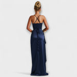 Das Krissi - Marineblaues Maxikleid von Lora vereint zeitlose Eleganz mit einem modernen, stilvollen Design, das perfekt für besondere Anlässe und festliche Events geeignet ist. Der Hauptvorteil dieses Maxikleids liegt in seiner schmeichelhaften Passform und dem luxuriösen Satinmaterial, das jede Bewegung geschmeidig begleitet und für einen atemberaubenden Auftritt sorgt.