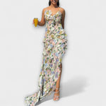 Das Indie - Rüschendress mit Trägerdruck von Marke verleiht Ihrem Outfit einen unvergleichlichen Hauch von Eleganz, perfekt zugeschnitten auf stilvolle Anlässe und elegante Partys. Dieses Maxikleid besticht durch sein lebendiges Design, das dank der geschichteten Rüschen für einen verspielten und zugleich femininen Look sorgt.