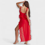 Entdecke das Lara - Stilvolles Maxikleid mit Schlitz von Marke, das durch seinen eleganten Schnitt und den verführerischen Schlitz besticht. Dieses Kleid ist die perfekte Wahl, um bei besonderen Anlässen mit zeitloser Eleganz zu glänzen und deine feminine Ausstrahlung zu unterstreichen.