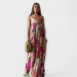 - Retro Gedrucktes Design: Das lebhafte Retro-Print-Muster verleiht dem Maxikleid eine unverwechselbare und zeitlose Ästhetik.