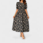 Das Amelia - Kleid mit Rundhalsausschnitt und Blumenmuster von unserer exklusiven Kollektion besticht durch seinen femininen Charme und vielseitigen Tragekomfort. Perfekt abgestimmt auf alle, die ein stilvolles Midikleid suchen, das sowohl elegant als auch bequem ist – ideal für entspannte Tage im Park oder festliche Anlässe wie Hochzeiten unter freiem Himmel.