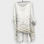 - Elegante Lochstickerei: Feine, kunstvolle Details, die der Bluse eine edle und zeitlose Optik verleihen.