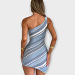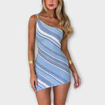 Kira - Trendy Ein-Schulter Strick Mini Kleid