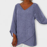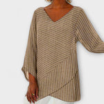 Das Penelope - Gestreifte Drapé Oberteil von exklusiver Qualität steht für mühelose Eleganz mit einem modernen Twist und ist perfekt zugeschnitten auf entspannte Tage sowie gehobene Alltagslooks. Dieses Oberteil bringt frischen Wind in Ihre Garderobe und überzeugt durch eine fließende Silhouette, die Komfort und Stil harmonisch vereint.